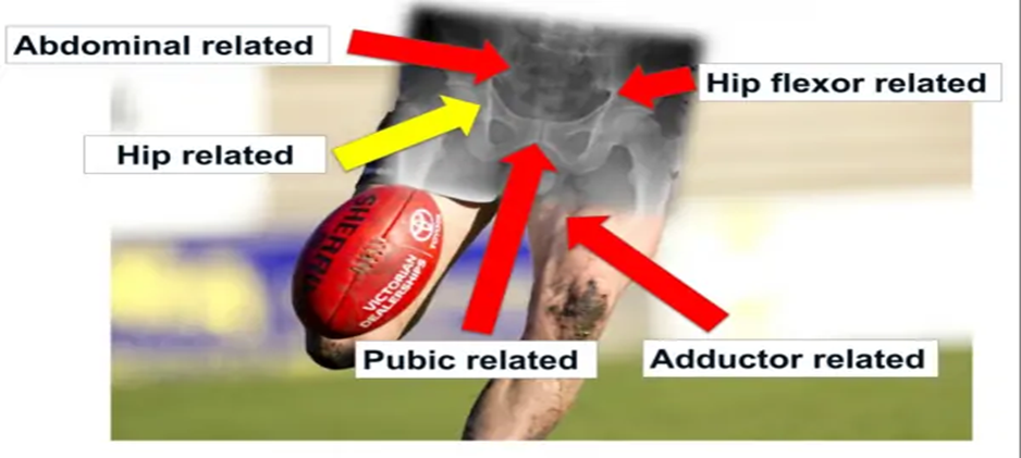 Son yıllarda yayınlanan bir konsensüste kalça veya kasık ağrısının kalça addüktör kasları, kalça fleksör kasları, pubis, kasık ya da kalça ile ilgili olabileceği belirtildi.